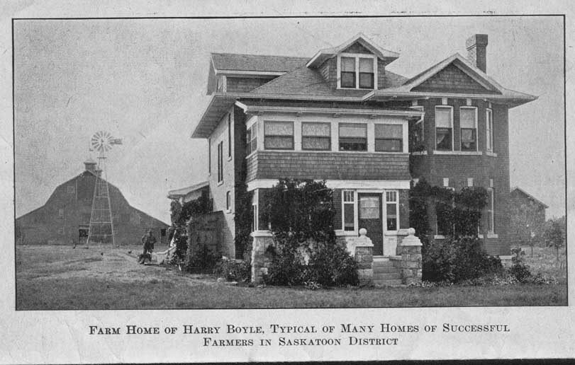 Harry’s house near Grandora, Saskatchewan, was used in a promotional booklet that Saskatoon put out in 1928. In it can be seen his barn, which was rigged up to have solar heated water to wash the horses down with. The house still stands today.
