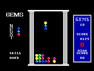 ![]() | Gems (1991) | A fairly close clone, except single player only, and with some flourishes of it's own thrown in (different block sets, and skill levels based on how many unique blocks you can get during a game). The alternate shapes included dice and symbols. |