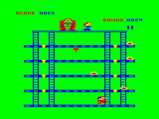 ![]() | Canyon Climber (1982) | Radio Shack/Tandy's loosely based clone, with 3 screens. The first 2 roughly duplicate the first 2 from the arcade; the 3rd is unique. |
