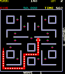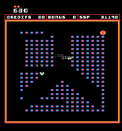 ![]() | Qix (1981) | An original concept at the time of it's release, Qix had the player trying to paint in a certain percentage of the screen by drawing (with 2 speeds of movement) lines. Once an area was completely enclosed by the player's lines, it filled in. Various enemies move around the screen or track the player (more at later levels). |