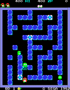 ![]() | Pengo (1982) | A cute game by Sega that is fairly unique in game play, where you push ice blocks to crush Sno-bees. There are also 3 special blocks that you get a bonus for aligning together, and a timer based bonus as well. |
