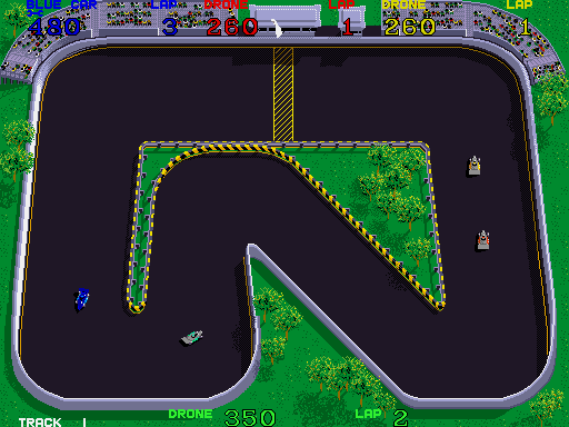 ![]() | Super Sprint (1986) | Super Sprint was a much more advanced sequel to the original 1970's Sprint games; it featured much higher resolution (and color) graphics, up to 3 players simultaneously, and added in more hazards and road types, as well as the ability to pick up wrenches on the track so that you could boost attributes of your car (traction, maximum speed, acceleration, and points multiplier). |