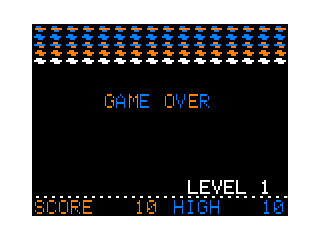 ![]() | Return of the Beast (ROTB) (2017) | A very ambitious game for the Coco 1/2 and the Dragon, which features multiple terrains and aliens that sometimes fly in formation (like the arcade original), 4 way scrolling with 32 angles of flight, great sound effects and 3 channel music during the opening credits. Although lower resolution (128x96x4 to keep the speed up), it plays very well and is very impressive. |