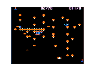 ![]() | Colorpede (1982) | The closest clone, appearance wise, to the arcade original. The mushrooms actually change color each wave, like the arcade, and it includes the scorpion, which some versions did not. Also the first game by Intracolor. |